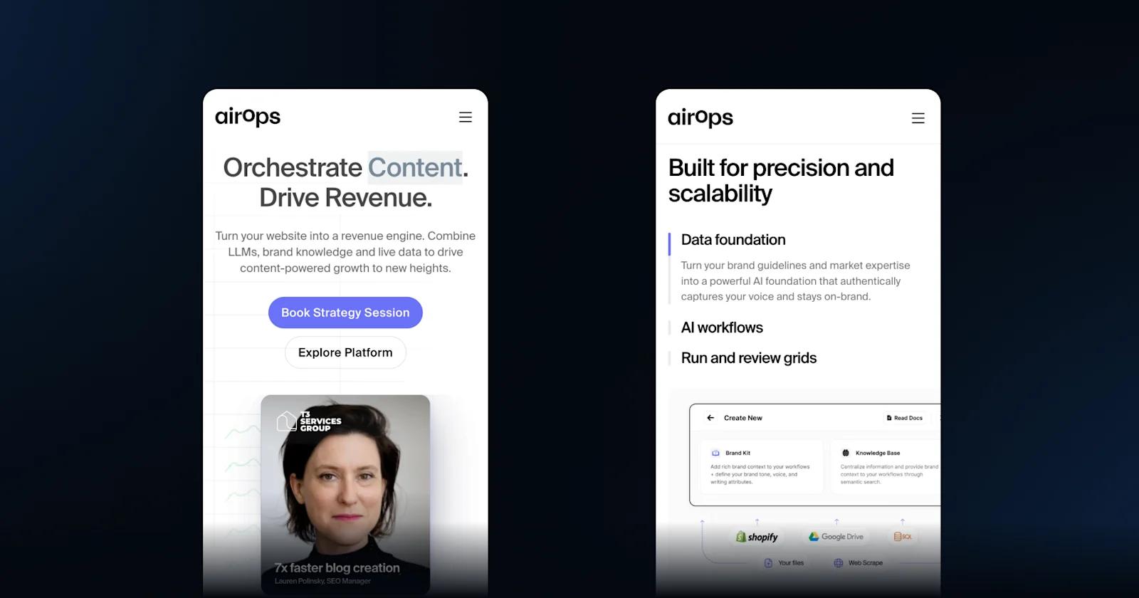 - 📂 Pre-built strategy templates – The page doesn’t just pitch a tool; it provides plug-and-play content strategy templates, ensuring users can get immediate value from AirOps.