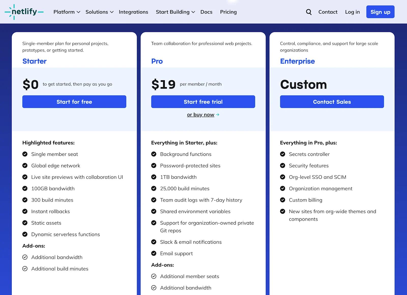 - Budget: Compare the pricing models offered by Vercel and Netlify. For enterprise solutions, you will need to evaluate the custom pricing and features they offer for your unique situation. Consider the features provided in each plan and evaluate whether they align with your budgetary constraints.