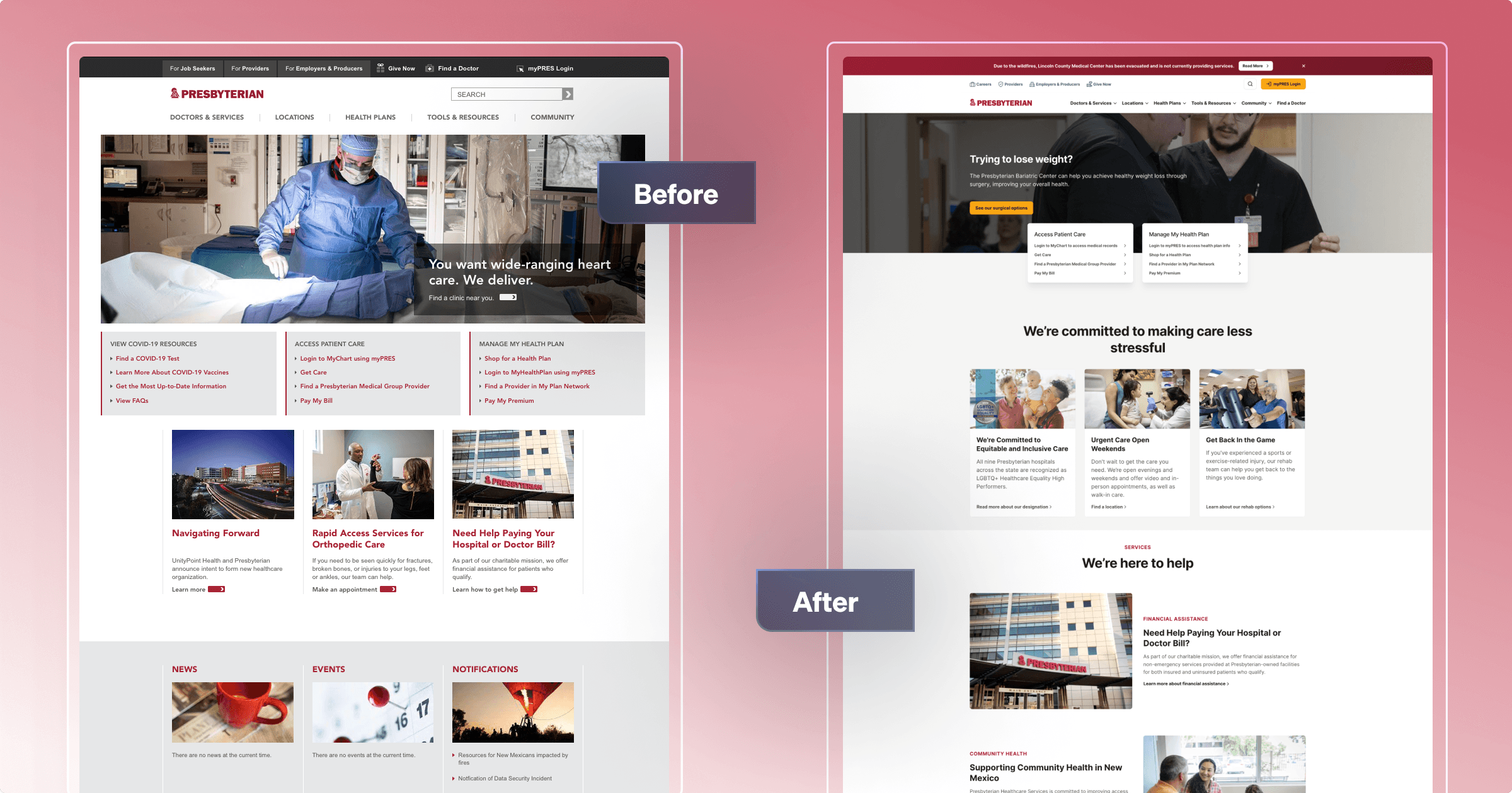 Ultimately, we recommended migrating and consolidating their website to a more scalable and future-proof solution. Our goals were to streamline website operations, enhance patient digital experience, and ensure PHS's website infrastructure could evolve with their organization long into the future.
