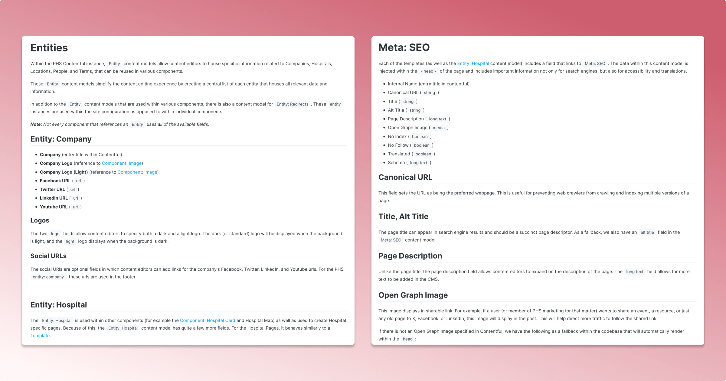 Then, when PHS hires new developers or content editors, these team members can quickly dive into the documentation, significantly reducing the time and resources required for training.